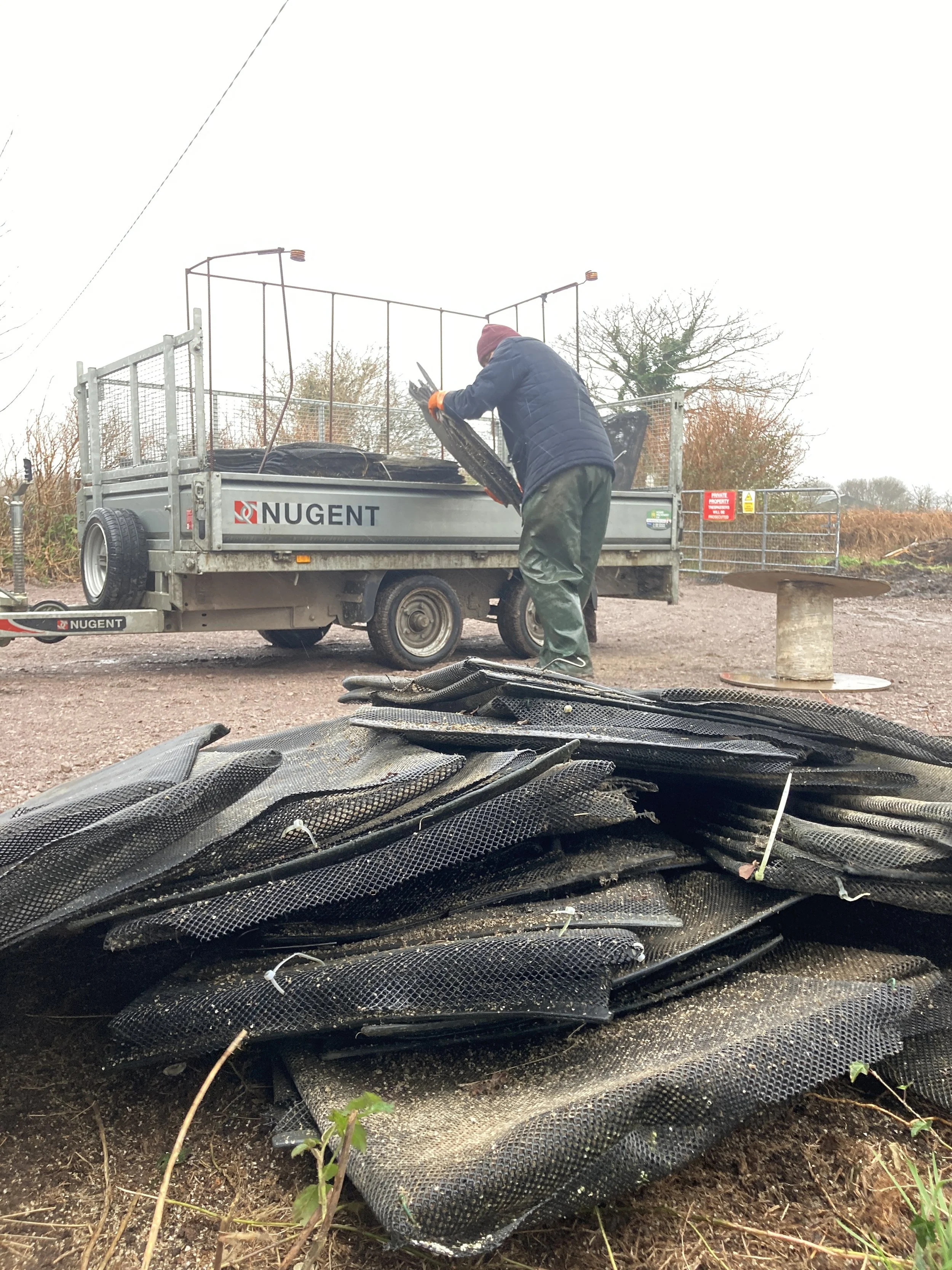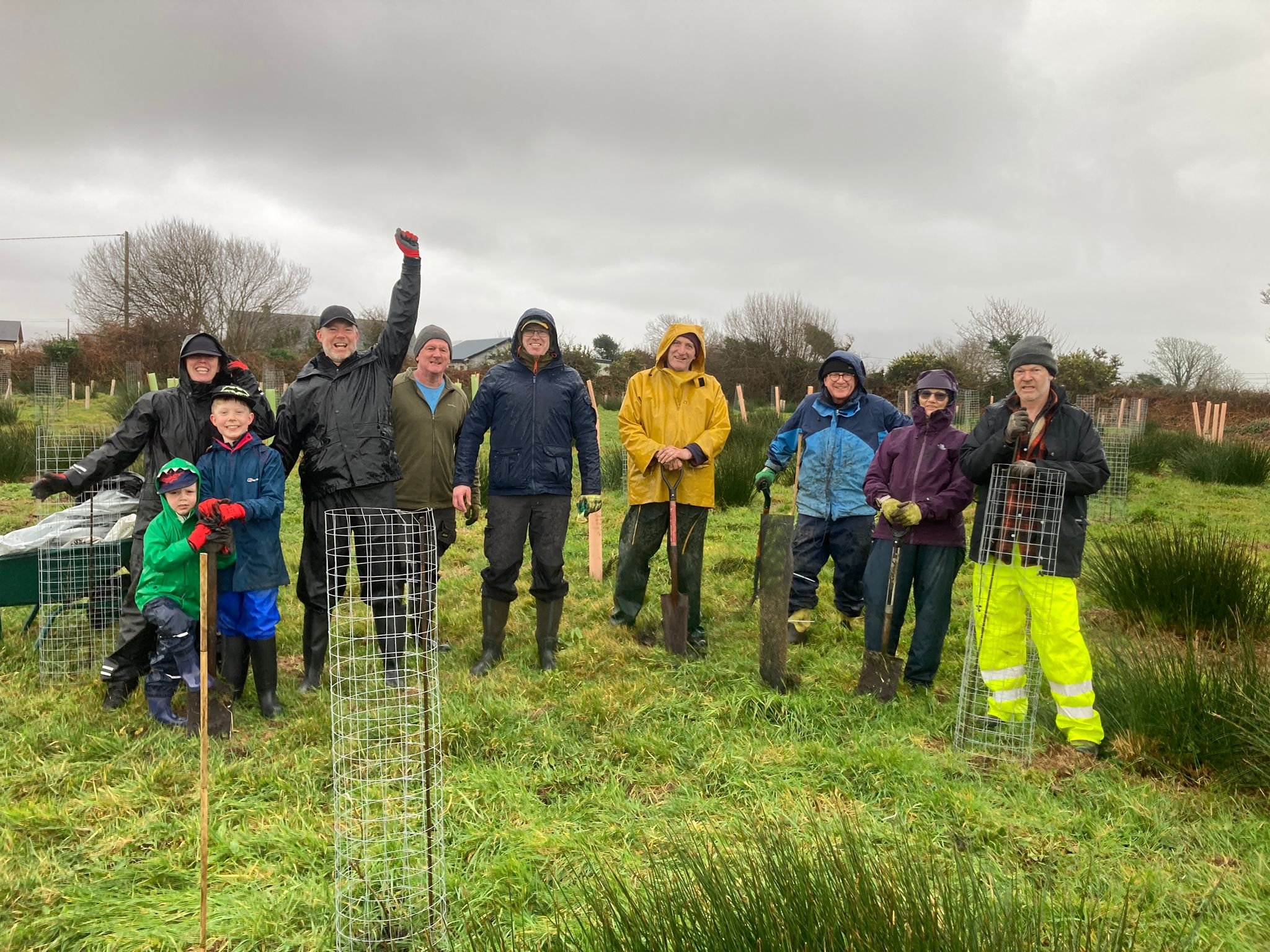We got our approval earlier this month to start planting under the Native Tree Area Scheme. Under this scheme we can plant up to an hectare without licensing and ecological studies. Everything goes through our local forester. We planted 380 trees over 1 weekend with an amazing group of volunteers consisting of old and new friends. As we have hares and deer on the property protecting the trees from these is important so part of the weekend was taken up by making tree guards. We used galvanised wired mesh for the guards for the Scot’s Pine and made guards out of redundant oyster bags which Tomás Hayes from Top Oyster in Cromane has so kindly donated.
